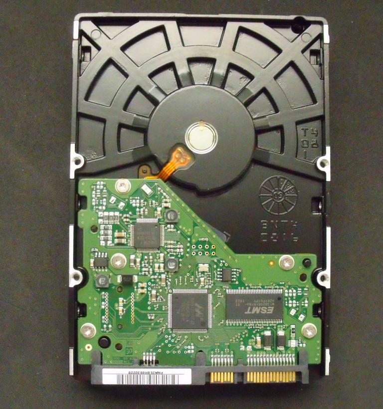 One area where the SpinPoint F4EG does vary from its competitors is the design of the PCB on the bottom of the device itself. Usually the drive controllers are placed facing into the drive itself whereas this drive has the control chips facing outwards. This may help thermally with heat dissipation as it would allows the chips to be exposed to the air inside the enclosure that they are placed in, however, none of these chips will produce much heat, as they are definitely geared towards low power usage. To the rear of the device you can see the standard SATA power and data ports that one would use to connect to the computer.