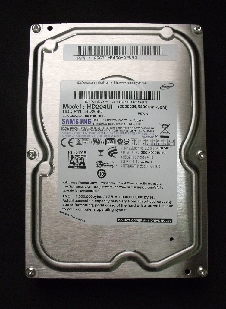 Samsung has made some marked improvements to this series of EcoGreen HDD in the F4EG. The F3EG had four platters whereas the F4EG sports three platters with an incredible areal density of 667GB contained on each platter. We can see that the big increases in density allow for fewer platters which equates to better performance and lower power requirements than Samsungs competitors. As a result the F4EG easily outpaces its rivals in many categories and we see that the performance gleaned from the higher densities helps the 5400 rpm class of drives immensely. This, combined with the Advanced Format Technology, allows for much higher capacities at lower price points. Advanced Format Technology changes the base formatting of 512 bytes per sector to 4k per sector. A big plus to the evolution of this newer form of formatting is increased data integrity and larger capacities.